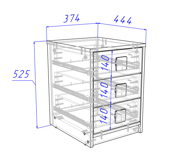 Направляющие выдвижных ящиков телескопические.